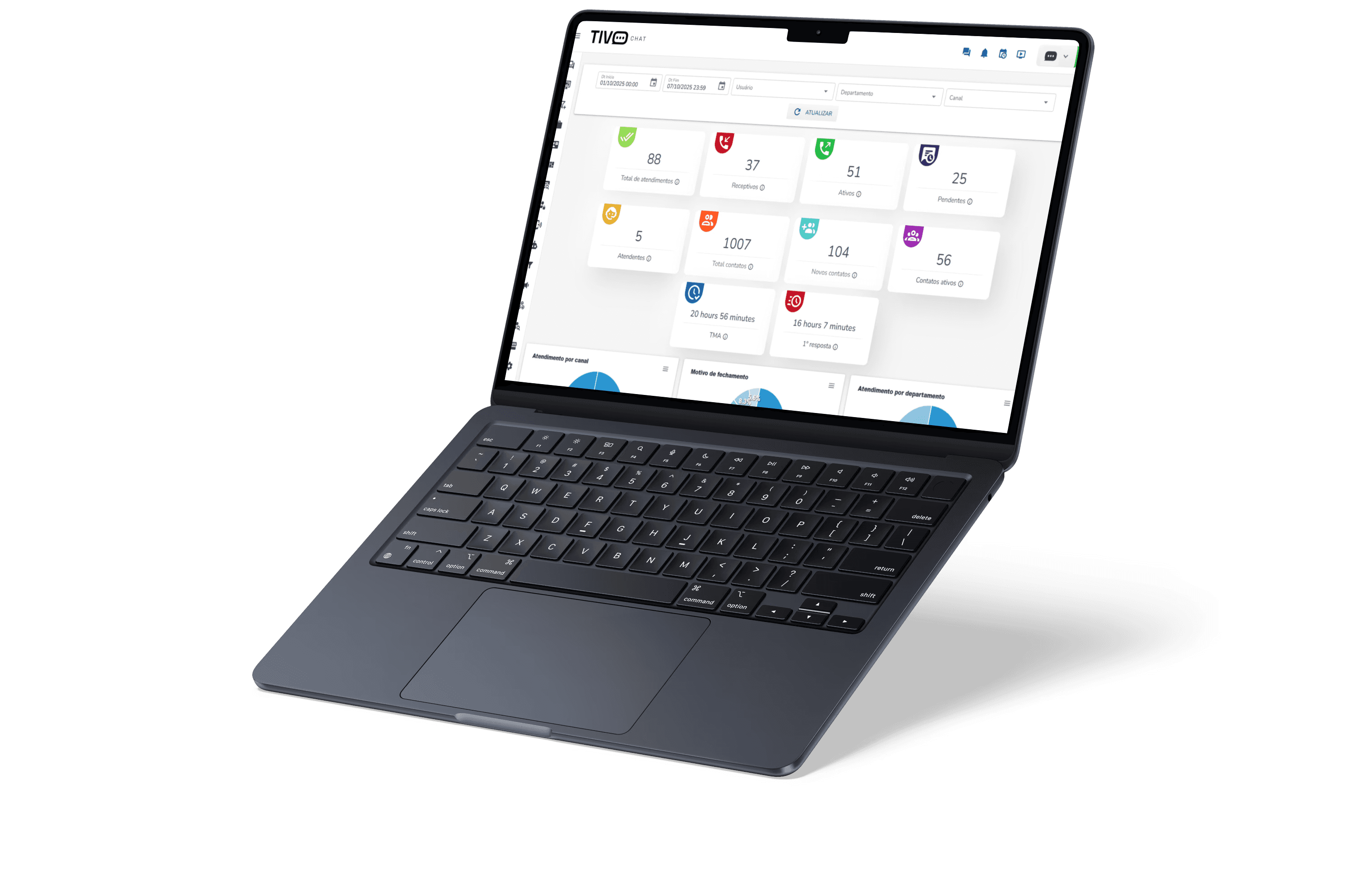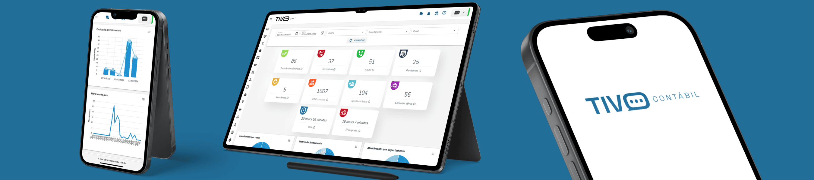 O TivoChat Contábil é uma plataforma que centraliza todas as conversas do escritório — WhatsApp, e-mail e direct — em um único painel.